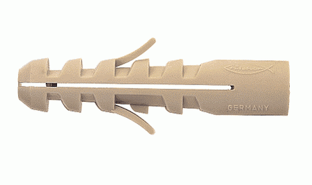 fischer rozpěrná hmoždinka M-S je vyrobena z kvalitního nylonu pro tyče či šrouby s metrickým závitem. Aplikuje se předsazenou nebo časově úspornou průvlečnou montáží. Utahováním šroubu se hmoždinka rozepře a zakotví se ve vyvrtaném otvoru. Tato nylonová hmoždinka M-S je vhodná k upevnění madel, žaluzií nebo stoupaček do betonu, plynosilikátu, plných sádrových panelů a dalších plných nebo děrovaných stavebních materiálů |