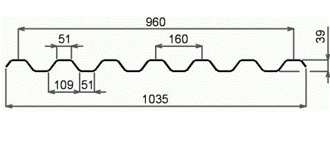 Plech trapézový 135/310 tl.0,75x135x310 š.930mm d=8,5m ZM60/S 320GD |